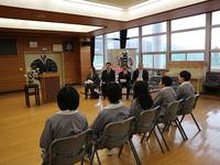 3月7日(木)、佐原小学校同窓会長尾形きよ江様をはじめ、4名の役員の皆様のご臨席の下、6年生5名が、伝統ある佐原小学校同窓会に入会いたしました。多くの立派な先輩方を輩出した佐原小学校の同窓生として、これからもがんばって勉学に励んで欲しいとのお話がありました。代表が入会の言葉を述べ、立派な態度で式に臨むことができました。