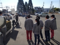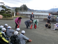 12月1日(金)、今年3回目の避難訓練を実施しました。今回は、2校時行間の休み時間に、「家庭科室からの出火」の設定で行いました。学級にいる子、外で遊んでいる子など、さまざまな場所から避難の放送をよく聞き避難をする訓練です。火災や地震はいつ起こるか分かりません。日頃から、放送がなったら静かに聞くことを学ぶことが大切です。今回は、消防署員の指導の下、6年生と職員の消火器訓練も行いました。火災予防には、十分に気をつけていきたいものです。