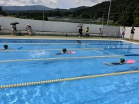 9月4日(月)、天候不順のため延期となっておりました「水泳記録会」を好天のもと、実施いたしました。多くの保護者の皆様の応援を受けて、子どもたちも精一杯がんばって泳いでいました。