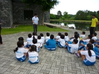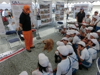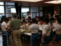最初に、ゴリラのオスとメスの頭蓋骨の違いを模型をもとに話してくれました。次に、ゴリラやニホンザルの鳴き声を教えてくれました。全員で、サルになった気持ちで、大きな声で鳴き声をまねしました。最後に、数字のゲームをして、「言葉は人間だけが使うもの、言葉は人と人が仲良くするために生まれたもの・いじめはいけないこと」を教えてくれました。