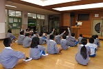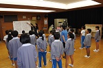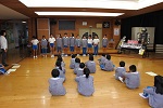 今月の全校朝の会は、内容が盛りだくさんでした。板井先生の話、全校合唱、シルバータロウの話(善い行いをした児童の発表)、賞状伝達、そして、市の陸上大会に出る選手の壮行でした。全員しっかり集会に参加できました。