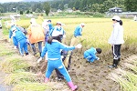 2016年10月4日 14時12分 秋の長雨のため、のびのびになっていた学校田の稲刈りを10月4日にようやく行うことができました。子どもたちのおうちの方や千寿会の方々がたくさん手伝いに来てくれました。お陰様で予定より早く作業が終わりました。子どもたちへのご指導やお手伝いありがとうございました。