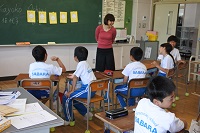 2校時がおわった後の休み時間に、4つの縦割り班ごとに運動をしました。