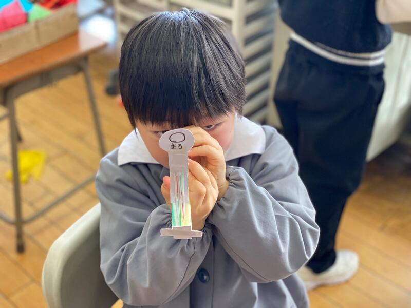 さて、週末の金曜日、教室を回ると1.2年生は図画工作をしていました。ストローを材料に組み合わせて、工夫して動くしくみをつくっていました。「見て、見て」と動く様子を紹介してくれます。