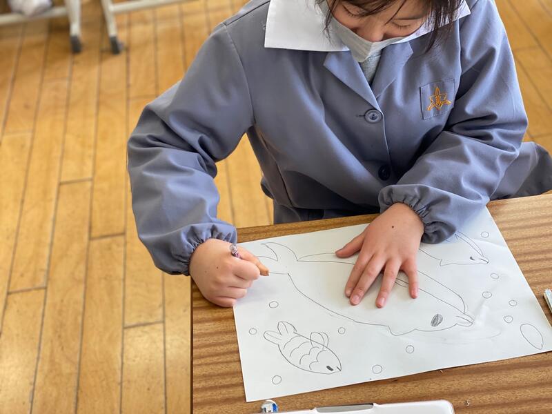3.4年生も図画工作。木版画の原案を描いていました。海の生きものや鳥が人気のようです。昆虫もおすすめですよ( ^^) _