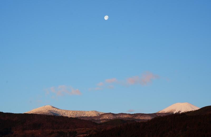 朝まだきとは、夜の明けきらないころを表す言葉です。早朝は空が晴れ渡って、吾妻山の上に月がよく見えました。とても気持ちのよい月曜日を迎えることができました。先週の雪も消えています。