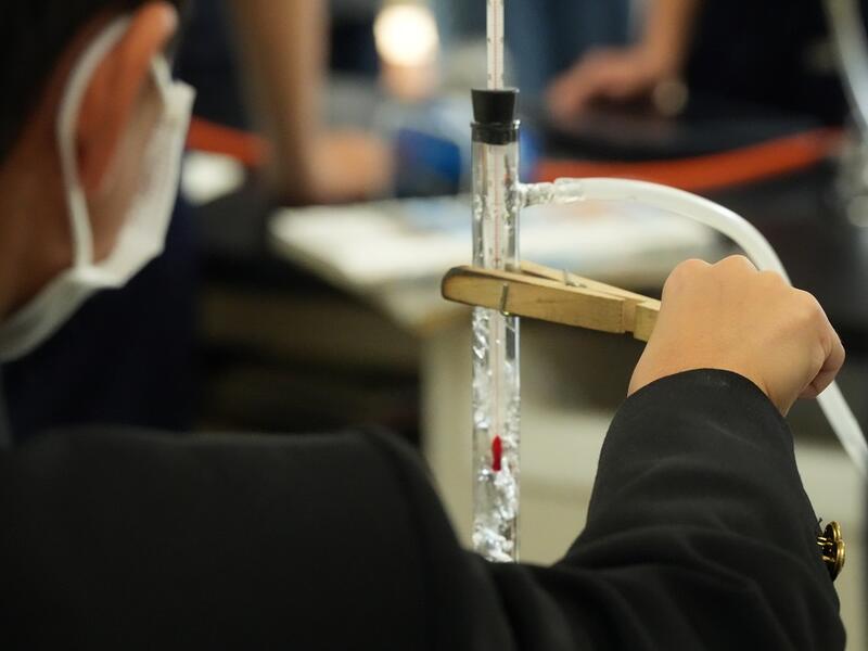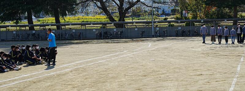 国語科、英語科、社会科、数学科・・・日常の授業を教室の後ろで緊張しながら見ています。校庭での保健体育の様子や理科の実験の様子も見せていただきました。