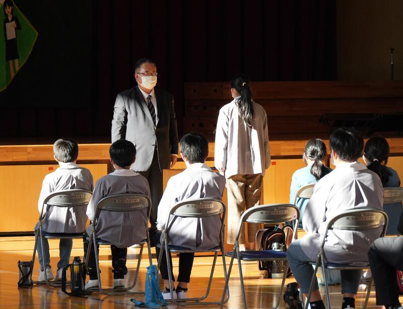 授業を見学した後の全体会では、中学校の教頭先生にいまの小学校でしっかり学ぶことが中学校生活に繋がると教えていただきました。