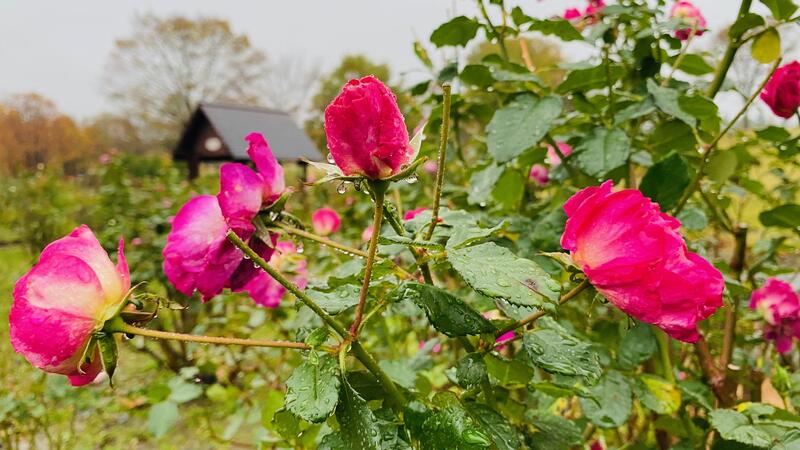 冷たい雨にも動じないような、この強い美しさが秋薔薇の魅力かもしれませんね。