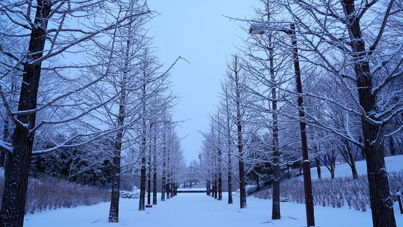 今朝の雪の中、枝ばかりのイチョウが並ぶ奥行きの空間は、深閑とした静けさが広がっていて、いつもより凛とした寒さを感じました。冬木立というより寒林という言葉がしっくりきます。