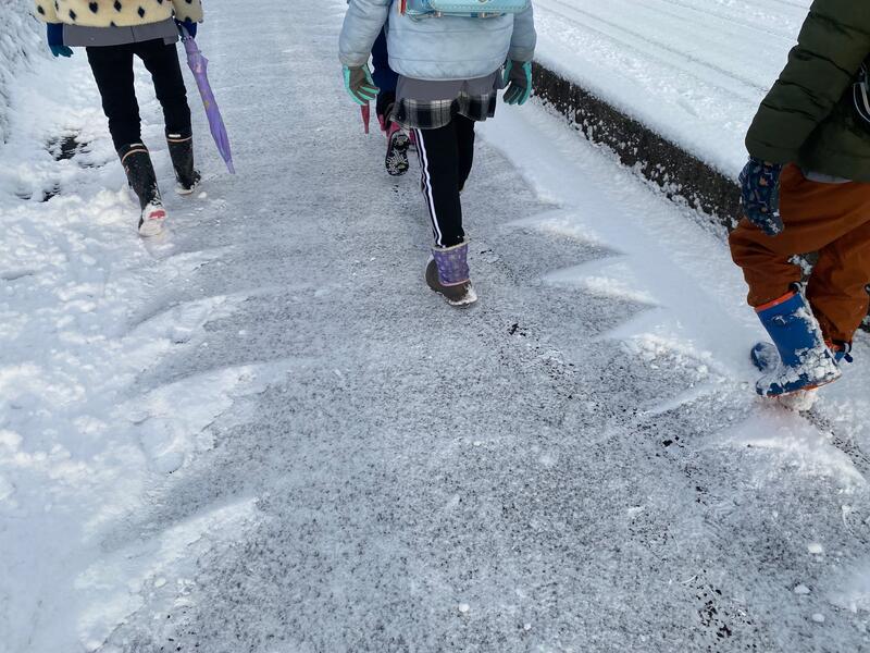 そんな朝でしたが、子どもたちはしっかりと足元を温かくして登校してきました。