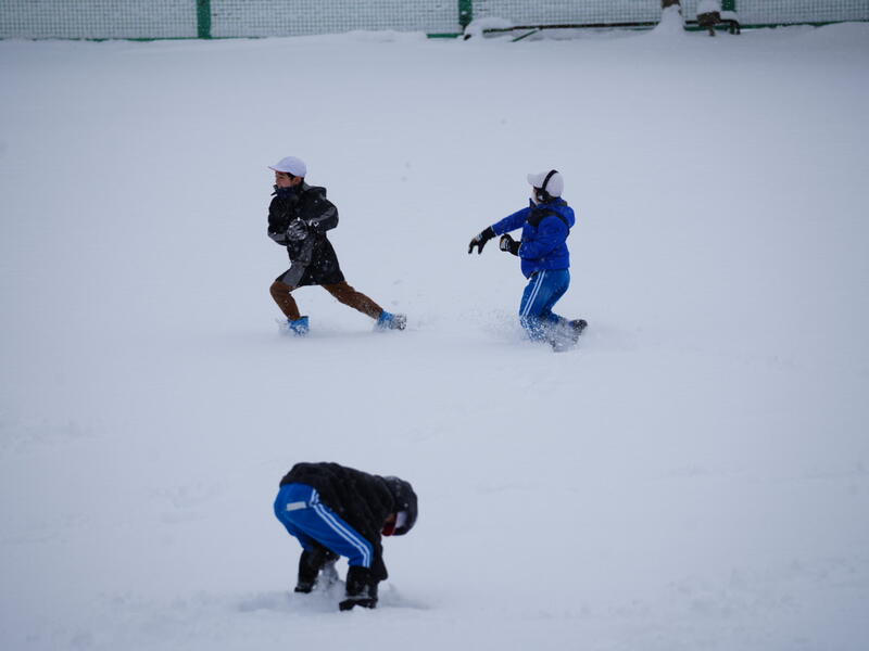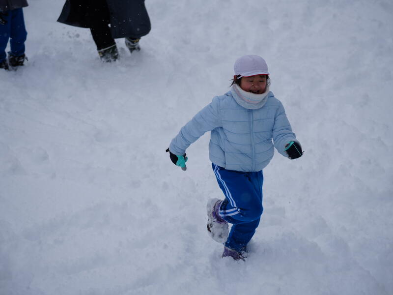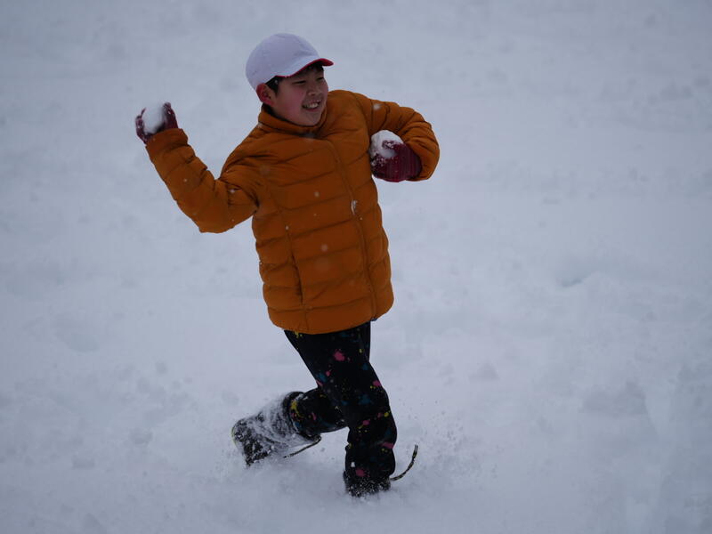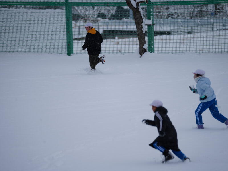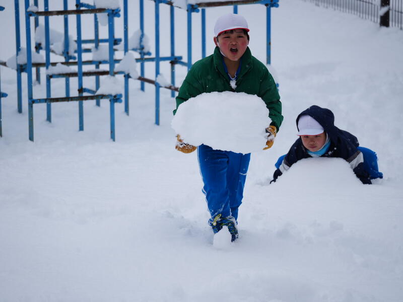 今シーズンの雪遊びは数えるほどです。休み時間になると、子どもたちはたくさんの雪に心躍り、広い校庭で遊びまわっていました。