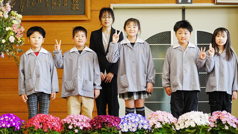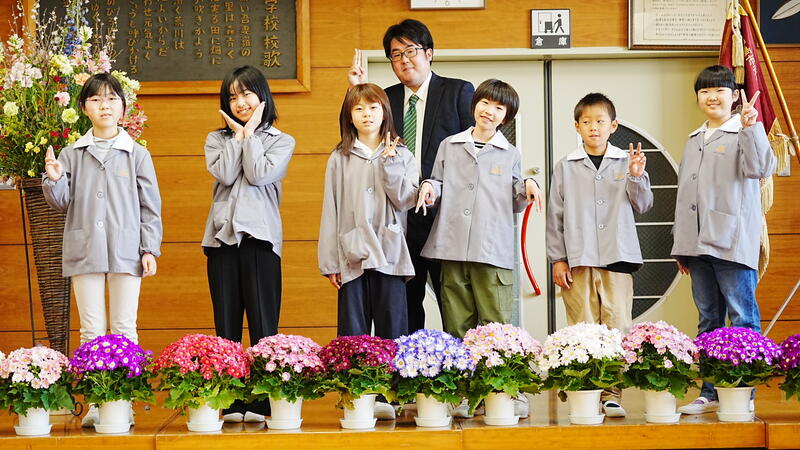 そして、今日は令和6年度第1学期が始まりました。学級ごとに記念写真撮影 ●~*