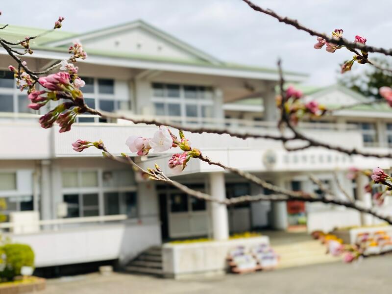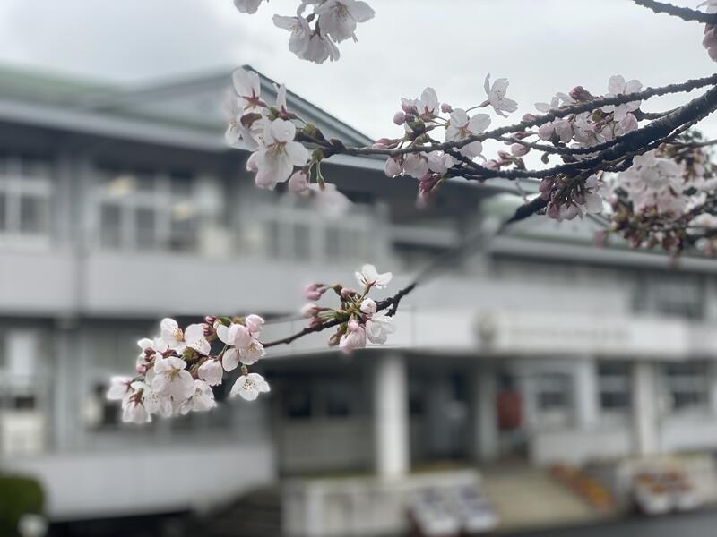 1学期の2日目は、朝から昼過ぎまでずっと雨が降り続いていました。午後2時を過ぎて徐々に雨が上がりました。校舎正門前の桜は、この雨で開花が促されたようです。