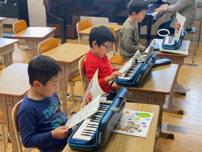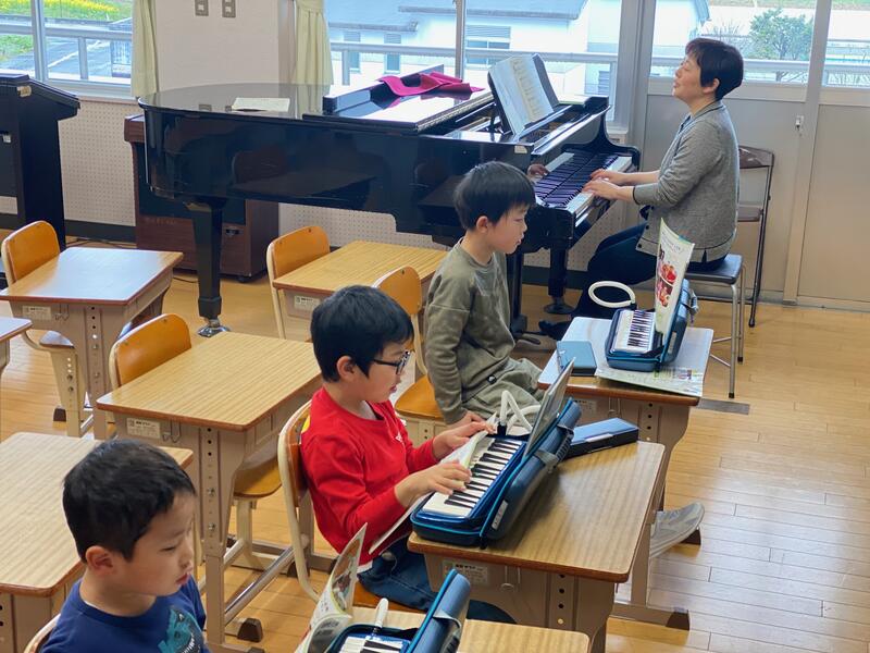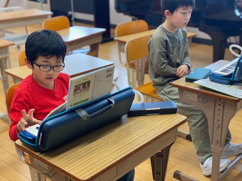 さて、教室では徐々に学習のピッチも上がっているようです。2年生は音楽室で授業をしていました。