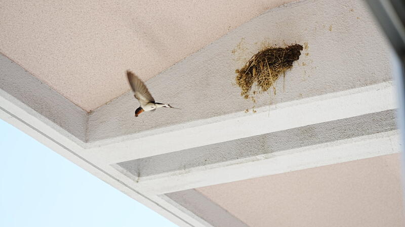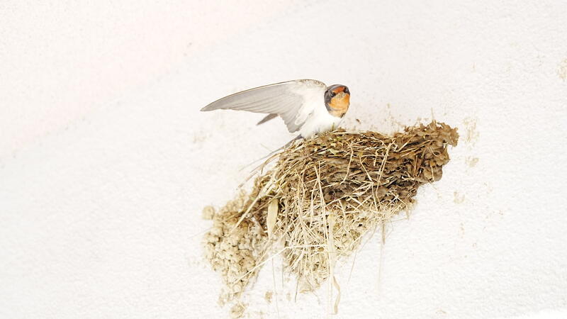 ツガイでしょうか、2羽の燕がせっせと巣作りをしてるのを間近で見ることができました。