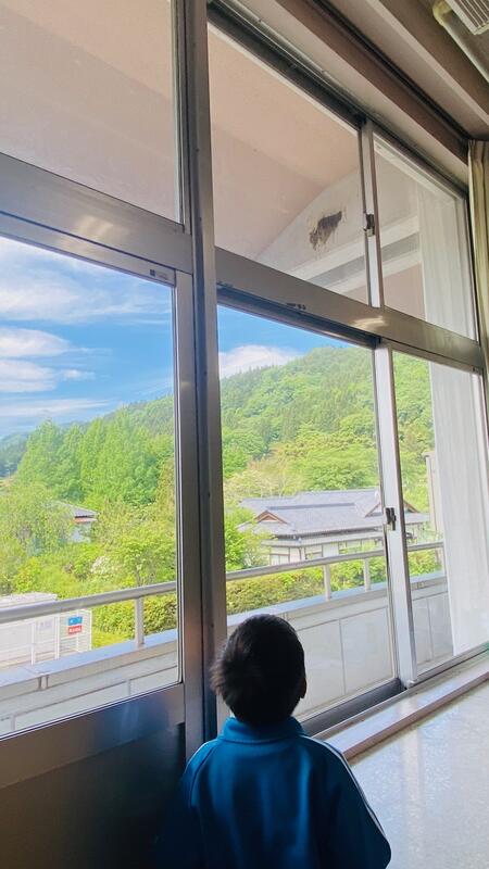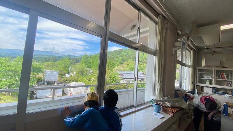 校庭側の窓を開けると、あづま陸上競技場のほうから声援が聞こえてきました。中学生の陸上大会が開催されているようです。心地よいさわやかな5月の空が広がる今日です。