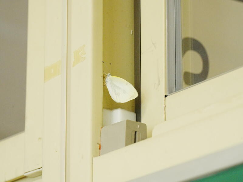 こちらは、しばらくするとどこかに飛んでいってしまい、子供たちはあちこち探しました。窓と窓の隙間に隠れているのを見つけることができました。
