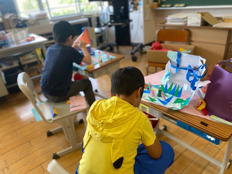2024年9月6日 11時35分週末の金曜日、2時間目の2年生は図画工作です。子供たちは夢中になって作品づくりに没頭していました。出来上がると写真も撮ってとリクエストがありました。