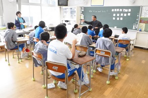 5・6年生が2時間、EAAの蓬田先生と英語の学習をしました。