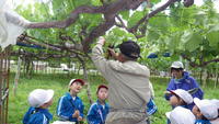ぶどう農家さんでは、ぶどう棚の下を歩きながら、青い小さな赤ちゃんぶどうの房に、早く大きくならないかな、秋になったら食べたいなと、期待をもって眺めていました。