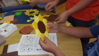 毎週水曜は、学校司書の齋藤美佳先生の来校日です。図書整理、本の紹介など図書室が子どもたちにとって居心地良い場所となるようお仕事をしてくださいます。今日は、5・6年生と一緒に掲示物を作りました。図書室で和気あいあいと作業をしています。「ひまわり」の掲示物を作り、図書室や1・2年教室に飾ります。
