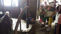 牧場では、牛舎の中も探検です。大人の牛の大きさや、1頭の牛から一日に25リットルも乳が出ることに目を丸くしていました。貴重な経験をさせていただきました。ありがとうございました。