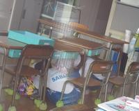 昼休み中の地震を想定しました。昼休みですので、教室にいる児童ばかりではありません。それぞれのいるところで、安全な場所を見つけ(安全確保行動)、地震発生訓練用の音源にあわせて頭を守ります。「まず低く、頭を守り、動かない」が安全確保行動の基本です。ご家庭でも、大きな災害が起こったらどうするのか、ぜひ話題にしてください。