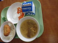 ◇1月30日、郷土色献立の日です。いか人参は「お正月に食べた」ことがある児童が多いようです。対して、芋がらは毎年この時期に給食で口にしてはいるのですが、あまりなじみはないようです。そう言えば軒先に芋がらを干している家庭をあまり見かけなくなりました。1~4年生は芋がらのイモは何のイモか考えながら食べました。5・6年生は完食です。