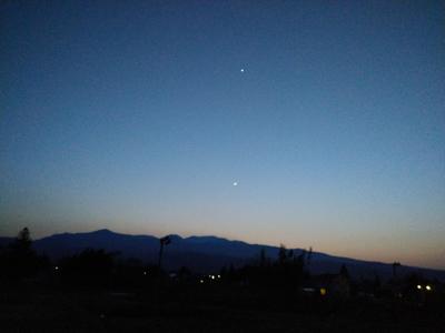 ◇「宵の明星(よいのみょうじょう)」の呼び名で知られる「金星」が今年の最高光度-4.5等級で輝いています。吾妻山の方向です。もう、あの明るい星はよく目立つと気付いている方も多いでしょう。月に負けないくらいの明るさです。