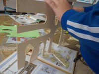 ◇10月7日、5・6年生は図画工作科で木工作品制作をしていました。電動糸のこぎりを使っています。直線や曲線、細かいパーツも切り取ることができます。どんな作品が仕上がるのでしょうか?
