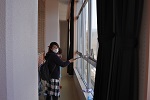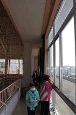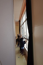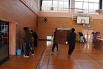 今回は、体育館の倉庫の清掃と2階ギャラリーの窓ガラス磨きです。