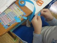 ◇3月2日、1・2年生、算数科の学習の様子です。1年生は、自分の考え方を説明することが上手になりました。2年生は、分数です。三分の一を表すのですが、紙テープを3等分に折ることに苦戦。難しいのです。