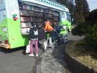 2021年3月2日 15時30分◇3月1日、待っていました、しのぶ号来校日です。思い思いに本を選びます。予約の手続きをする児童もいます。