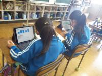 2021年3月3日 13時00分◇3月3日、学習の様子です。4年生は国語科です。アンケート結果を表やグラフにまとめるためにタブレットを活用しています。