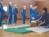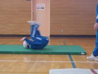 ◇5・6年生の体育科です。台上前転に挑戦中です。マットで前転の感覚を確かめます。タブレットで動画を撮影して自分のフォームを確認しました。