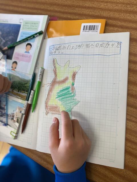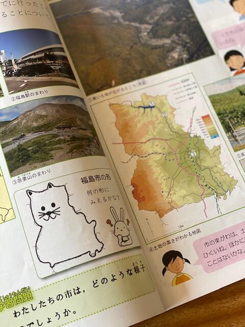 写真は3年生。社会科で自分たちが住む福島市の土地について学習していました。