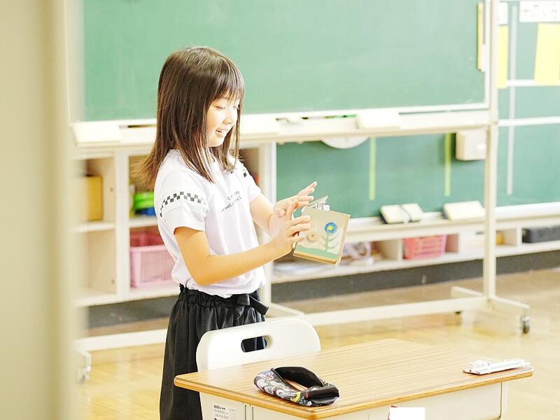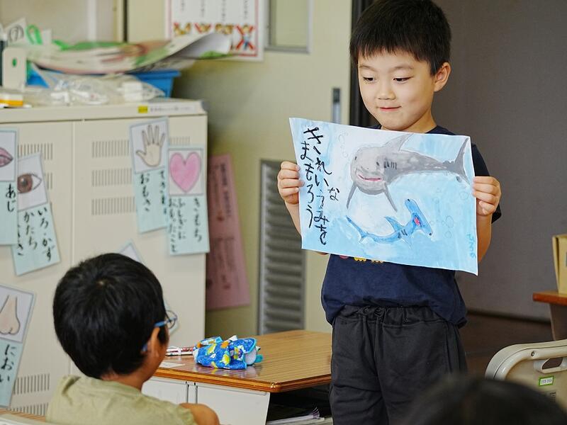 そして、教室を回るとさっそく夏休み中の作品や思い出を紹介している場面がありました。