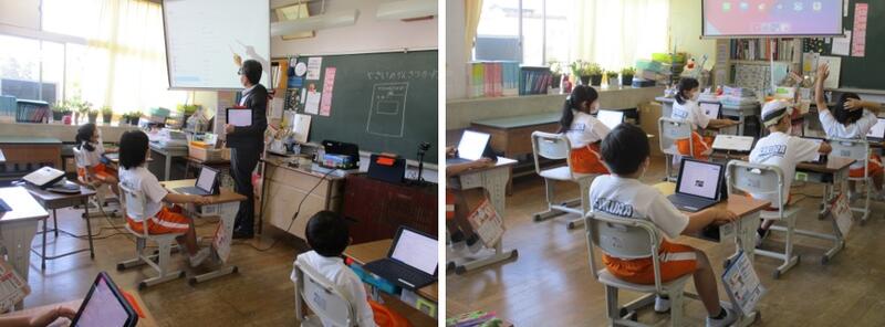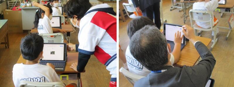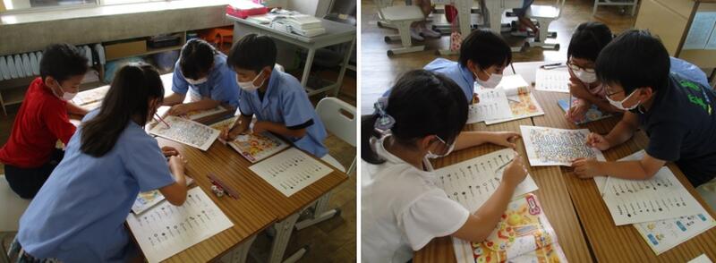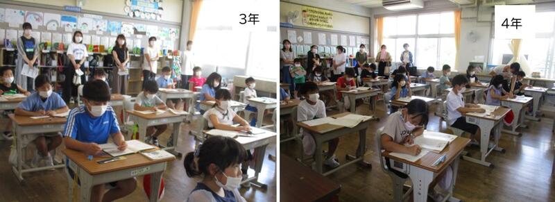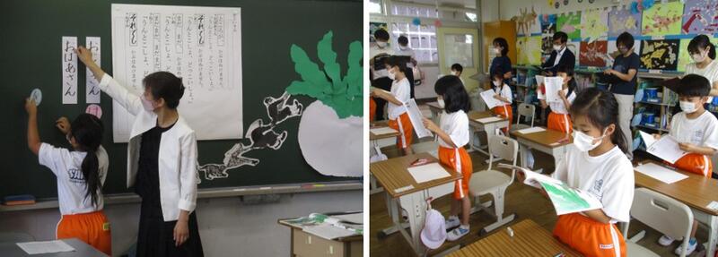 先生のお話をしっかり聞いて学習をしていました。国語の時間は、みんなで読んだり、男女に分かれて読んだり、上手に音読ができました。