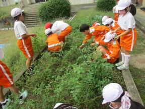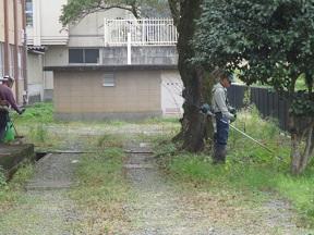 〇9/8 全校児童による校庭の除草 全校でむしるとあっという間にきれいになりました。