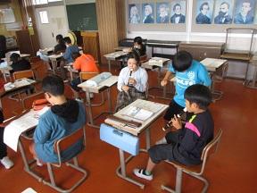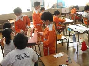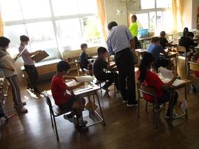 5校時目、通知表を配っている頃かと思い校内を巡ってみますと、3年生がちょうど配り終わったところでした。