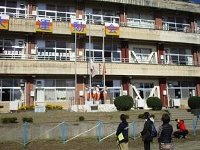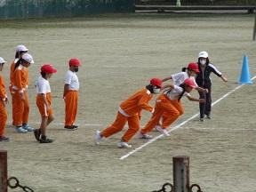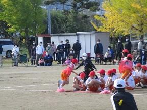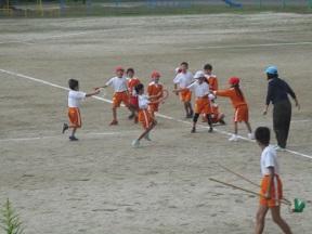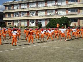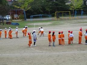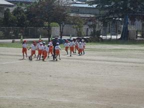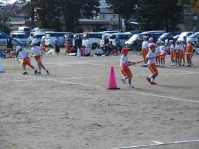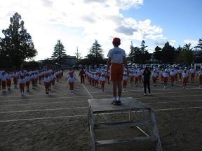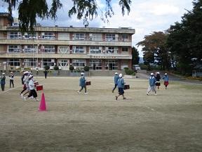 3年生は校庭で体育です。寒さに負けず縄跳びやリレーをやっていました。