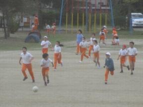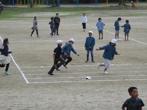 遊びの中身も、遊具から鬼ごっこへ変わってきているようです。寒いときは走ると暖かくなりますからね。中学年以上の男子はサッカーです。