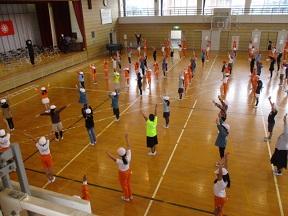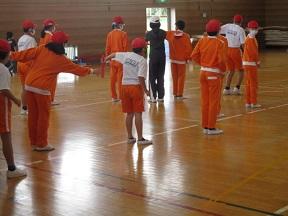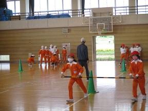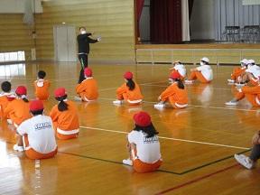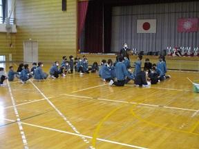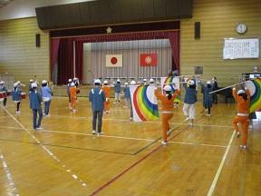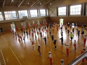 体育館では3・6年生が縄跳び運動をしました。非常に寒い体育館でしたが、寒さに負けず頑張って跳んでいました。
