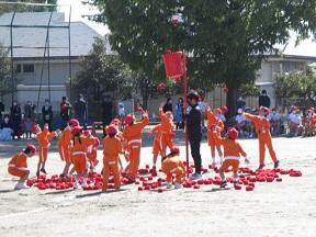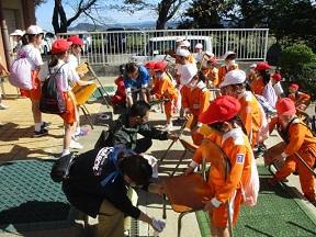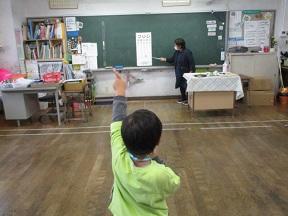 1年生はお楽しみ会。楽しく歌を歌ったり、ゲームをしたりしていました。(写真はハンカチ落とし)