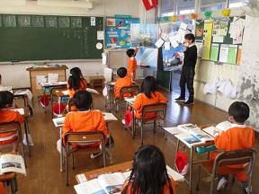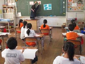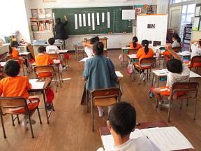 1年生は国語、『気もちをあらわすことば」についての学習です。児童が、積極的に手を挙げて、発表していました。