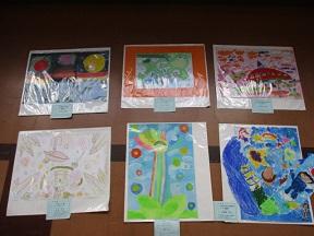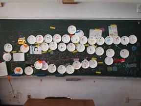 児童たちも、「この人知ってる。」とか「うちのお姉ちゃんだ。」とか言いながら、先輩の作品を尊敬の念をもって見ています。