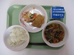 今日の給食で提供いただいた根菜の味噌汁、ゴボウやレンコンが入っていてシャキシャキした食感で、噛み応えがありとてもおいしかったです。