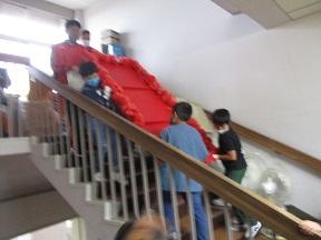 楽しく夕食を食べていると、突然5年生男子児童4名による楽しい出し物がありました。和やかなひと時でした。
