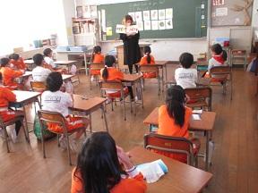 5年生は外国語科でした。ジョアンナ先生と月や季節を英語で言う活動などをしていました。児童の発音上手になりました。